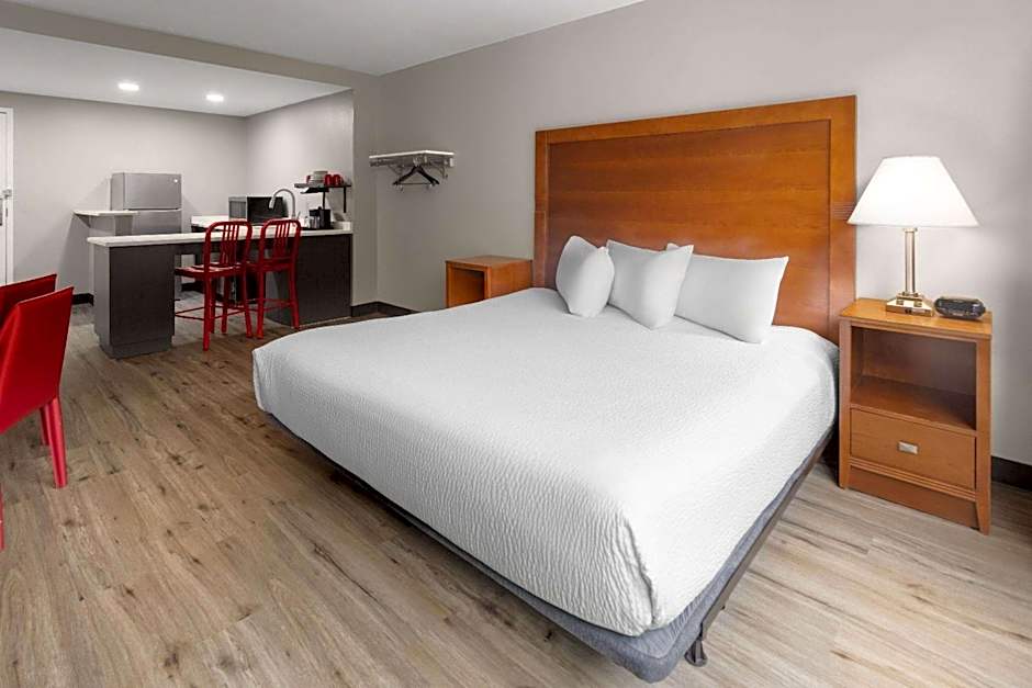 Key amenities include free WiFi, free private parking on site, and a free business center, along with a 24-hour front desk and air conditioning. The hotel is pet-friendly with extra charges and features a fitness center, sun deck, non-smoking rooms, kitchenware, kitchenette, a playground, picnic area, free toiletries, and a bathtub.